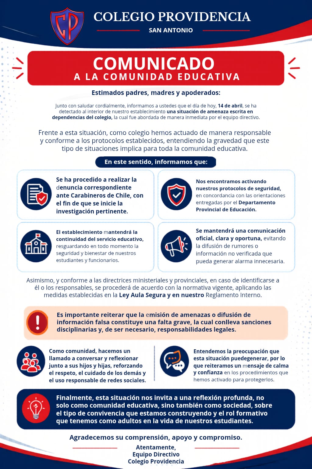 Actuación frente a vulneración de derechos de las y los estudiantes del establecimiento